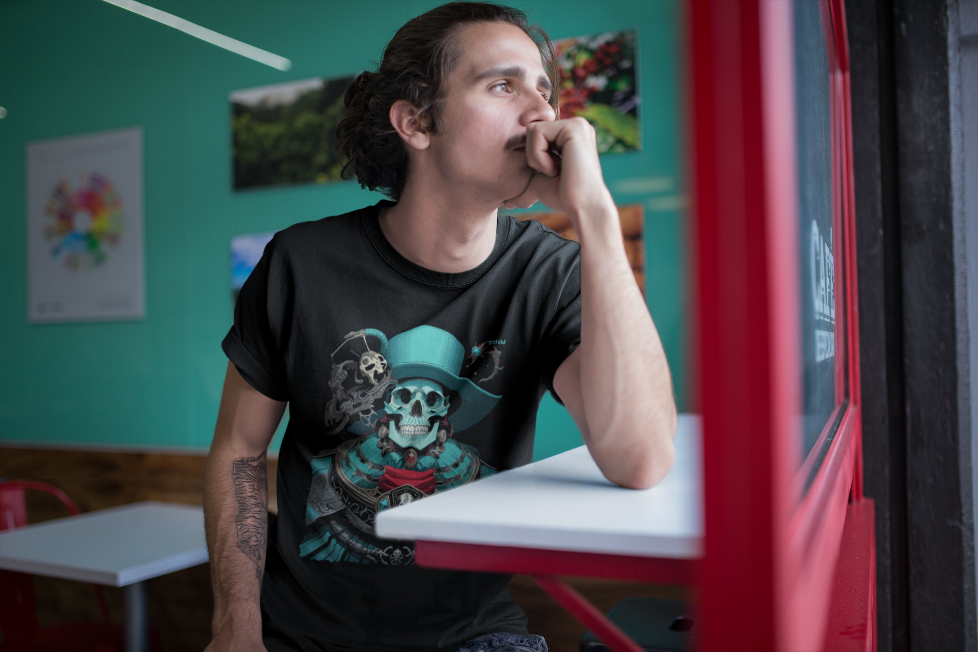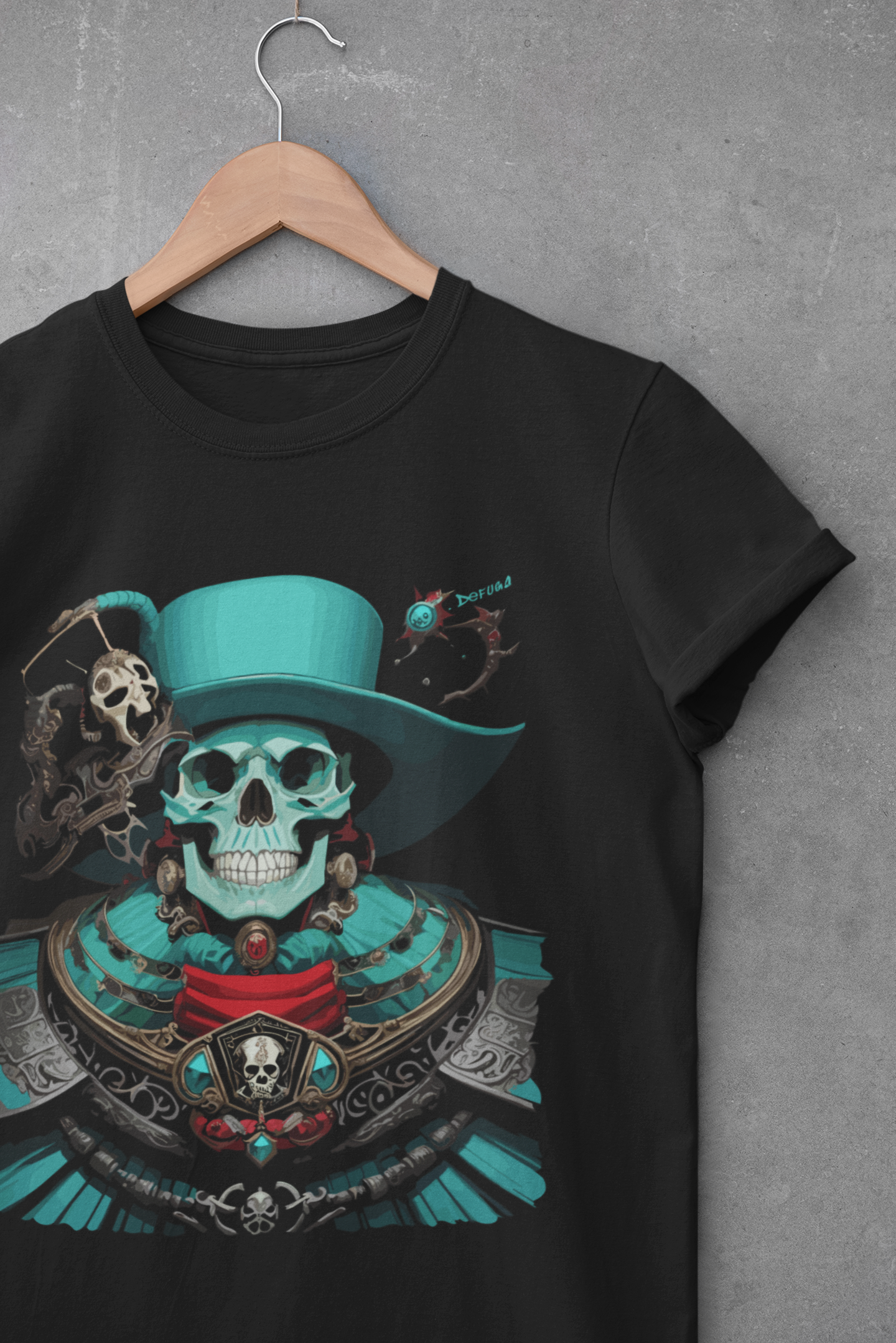 Dive into the world of .Defuga, where every T-shirt is a statement of fashion and quality. Our latest addition to the collection: "Barock Skull Turquoise" T-shirt, is a conversation starter, a piece that says you’re at the forefront of trendsetting. It’s the perfect blend of comfort and cool, a must-have that belongs in the wardrobe of anyone who appreciates fine craftsmanship and bold style. Make your mark with .Defuga’s fashion-T-shirt – because life’s too short for ordinary clothes.