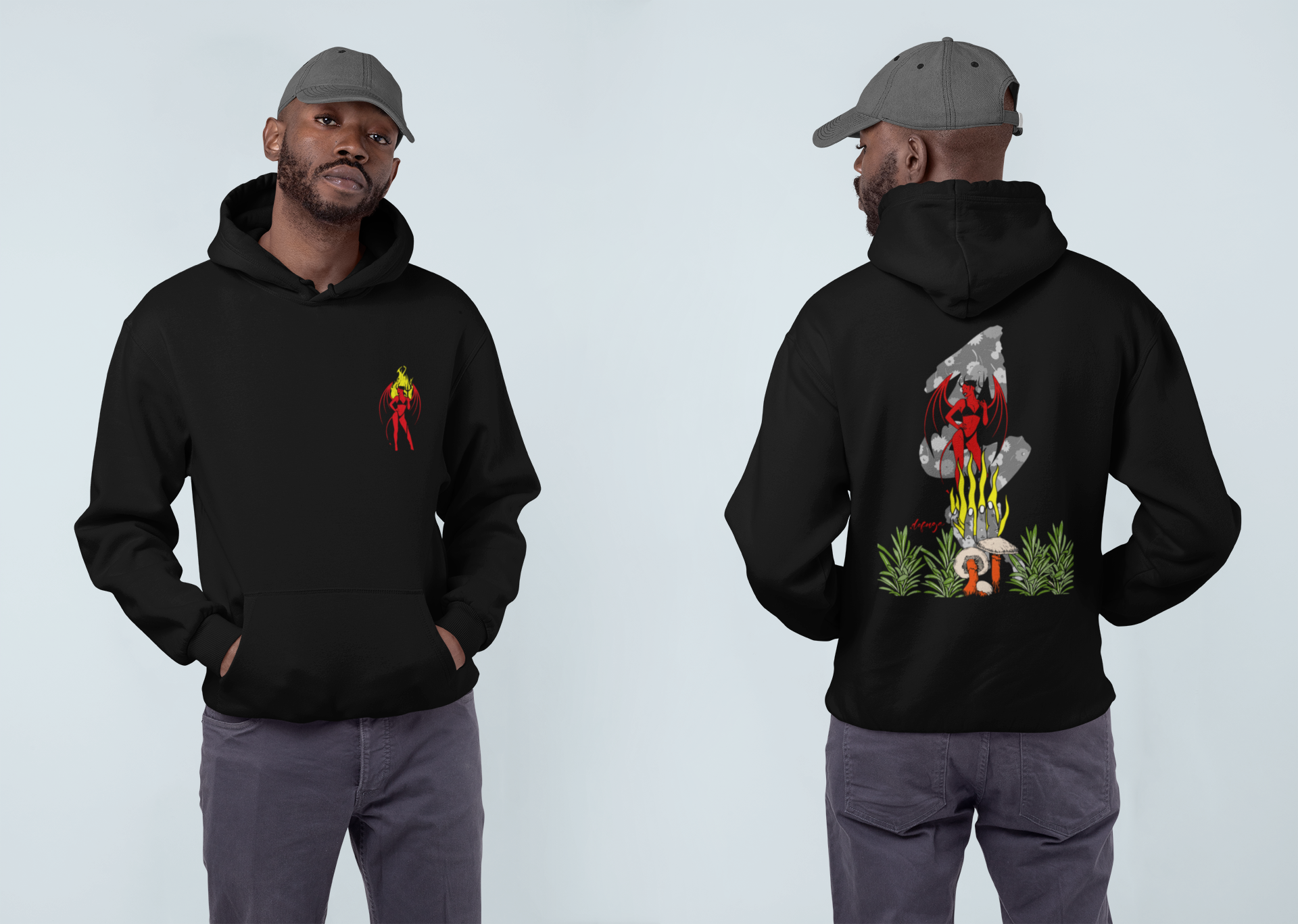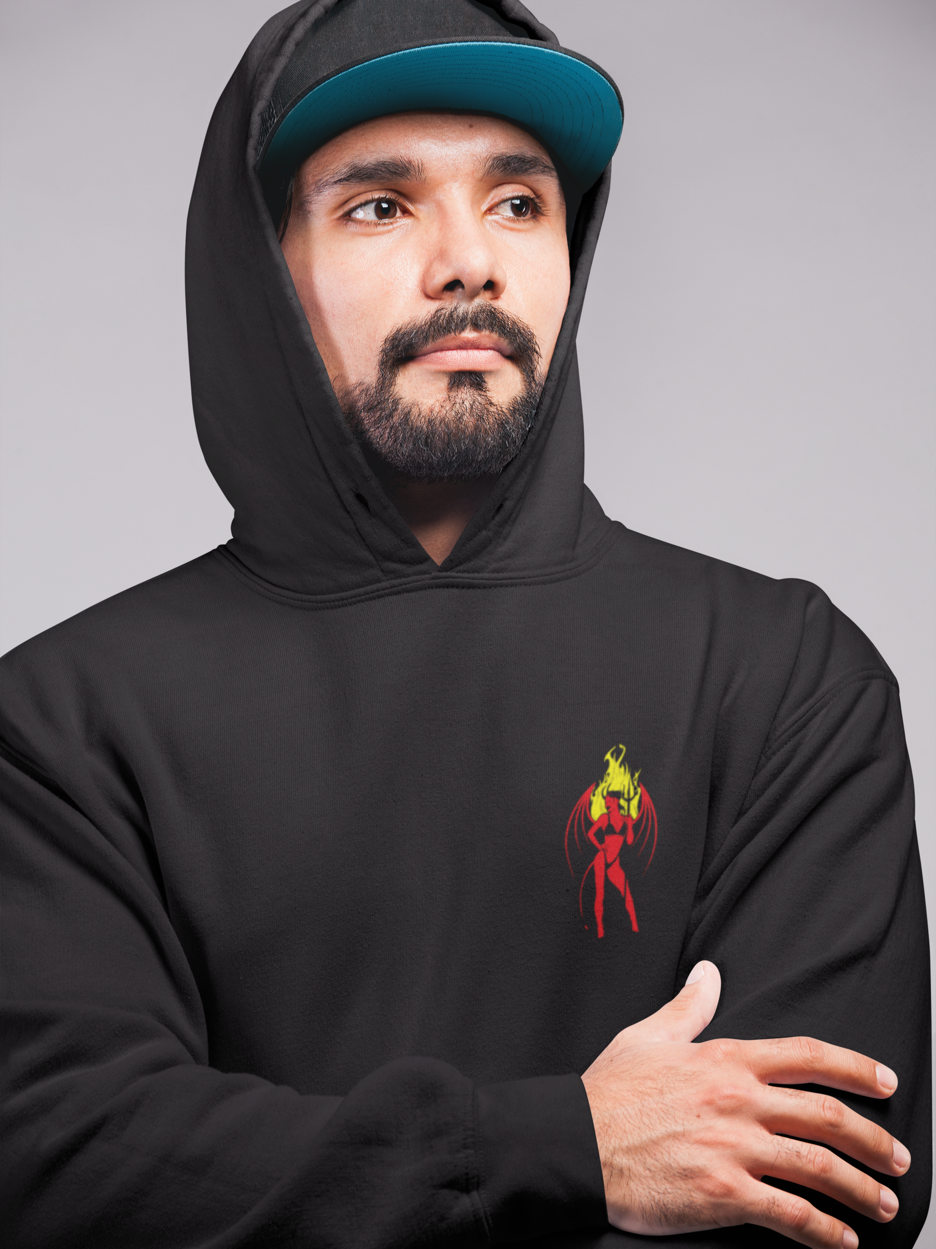 Expertly crafted with 100% Cotton, the Diablita Hoddie from the defuga collection is a must-have for those drawn to the mysterious forces of black magic. Its charming diablita design is both alluring and bewitching, while its soft style and loose fit offer unmatched comfort. Stand out in style.
