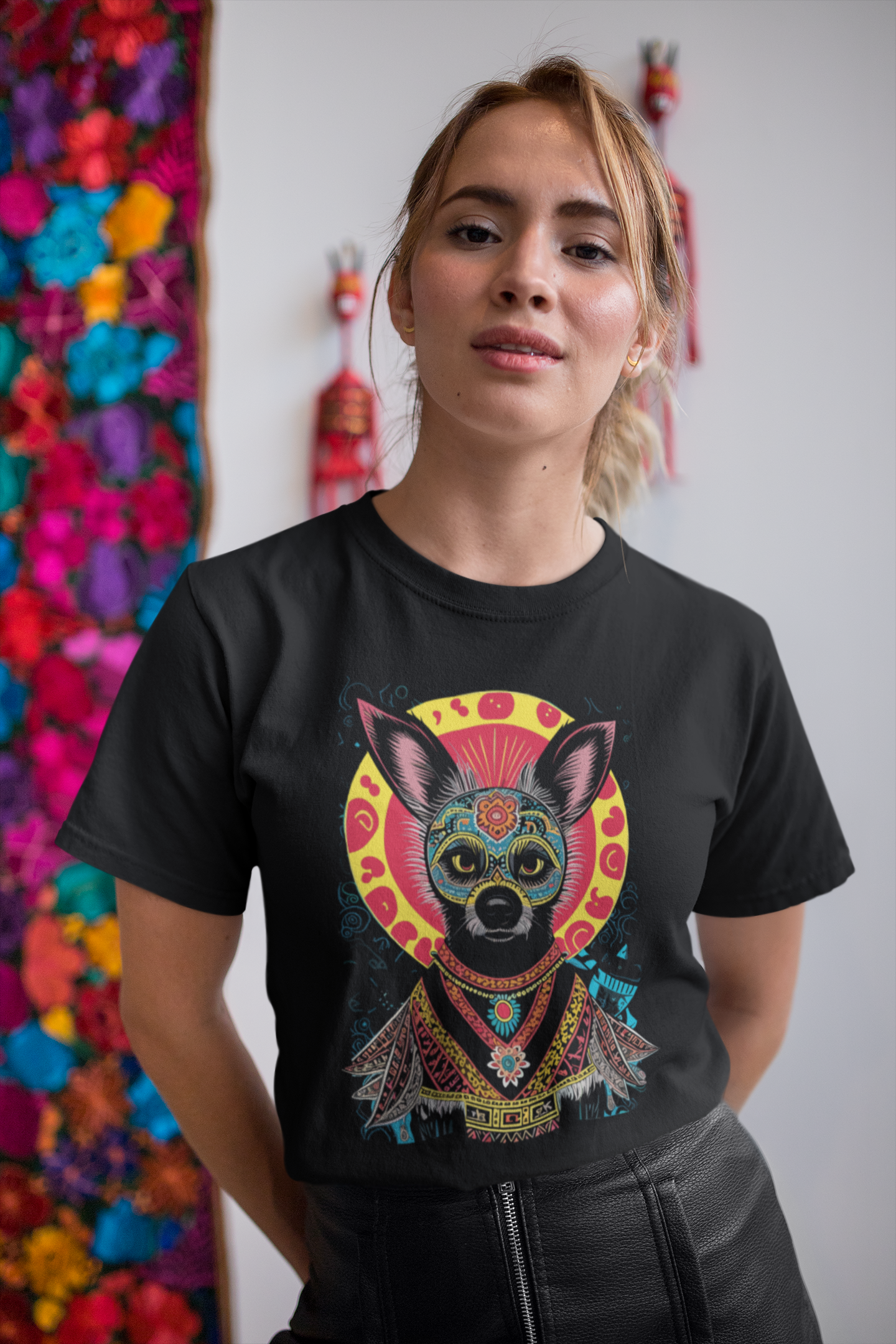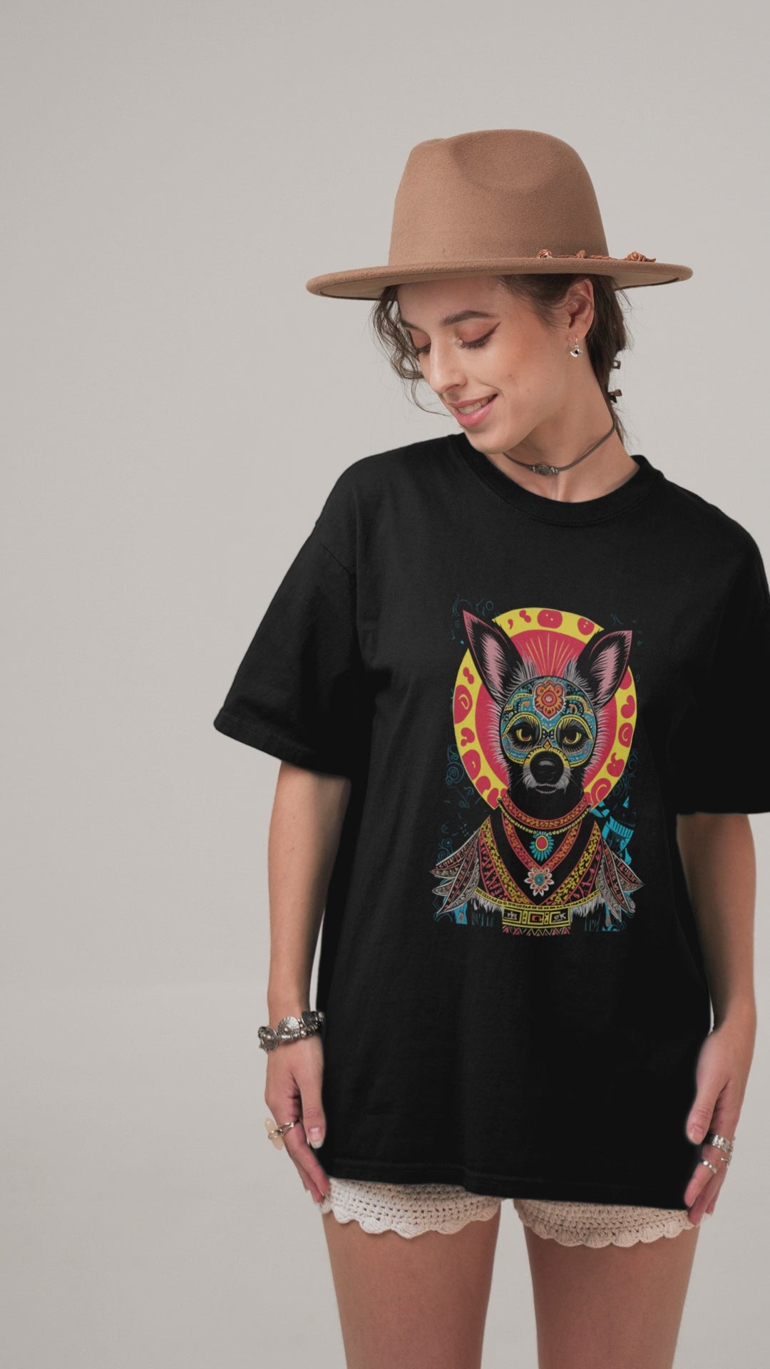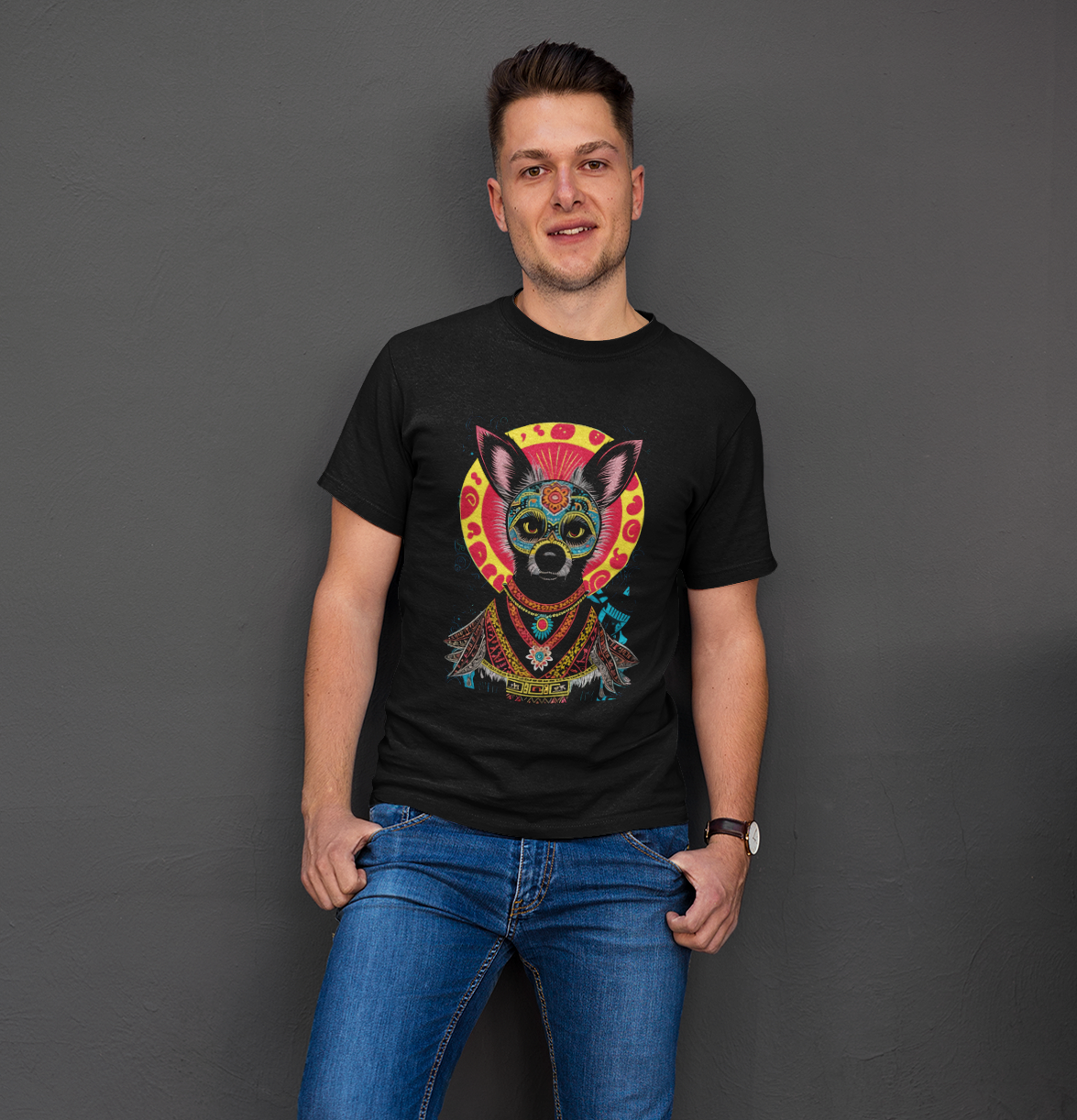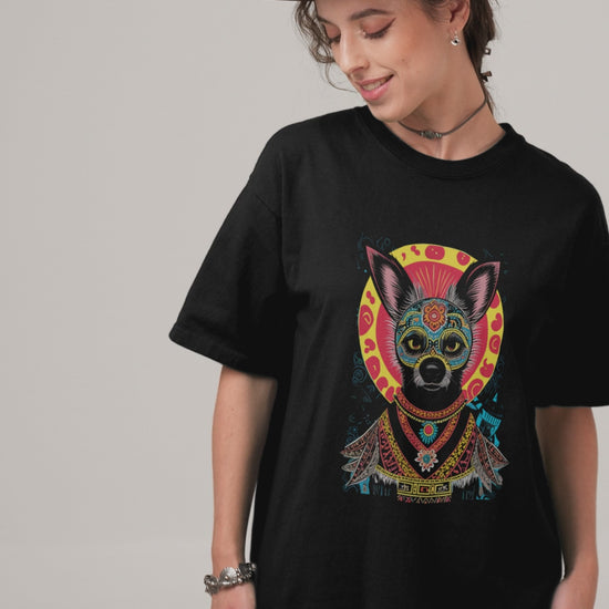 "The Super Chihuahua" t-shirt from the Defuga collection is made of 100% ringspun combed cotton, offering a soft, comfortable feel. Its loose fit and basic style make it ideal for everyday wear. Featuring a unique, creative design with bold colors that beautifully represent a Chihuahua dog. This unisex tee combines comfort and personality with ease.