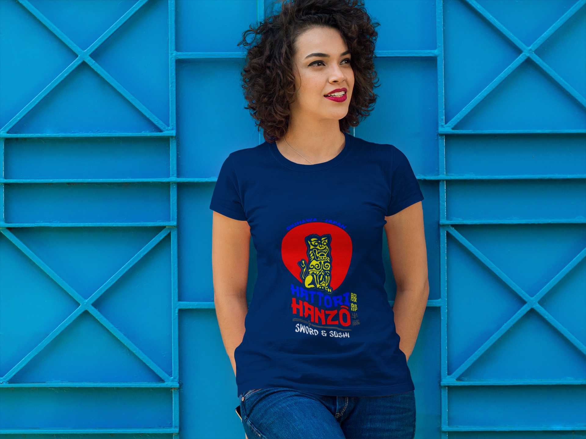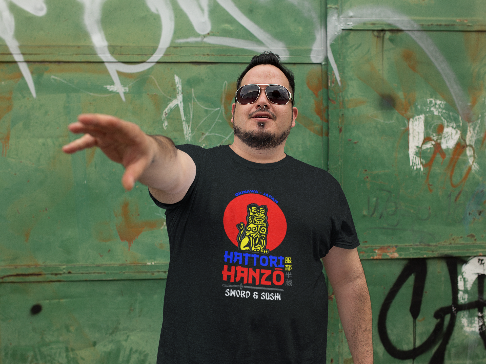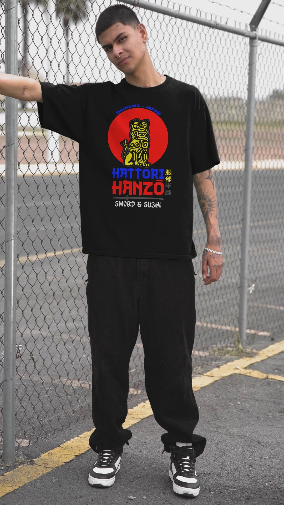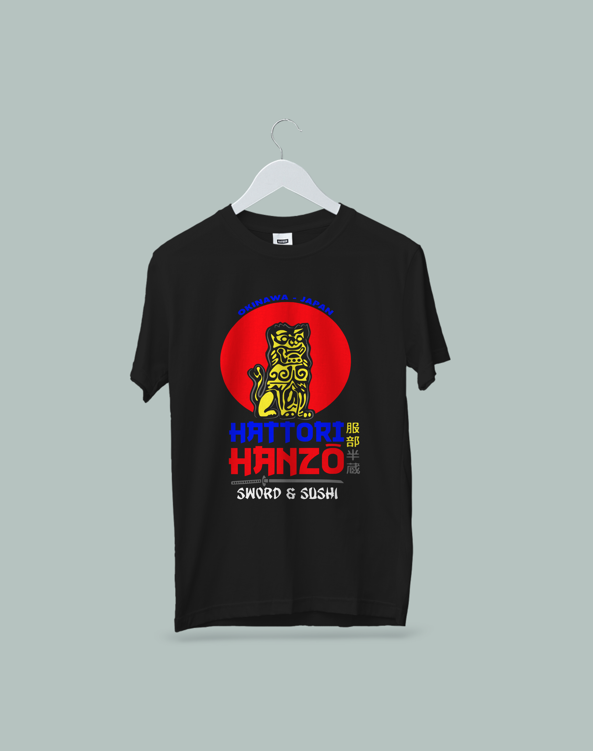 Representing the vibrant 'Hattori Hanzo' logo of the legendary samurai that became mainstream in the Kill Bill movie, this T-shirt is expertly crafted with a high-quality DTF printing process. It brings cinematic flair and historical intrigue to your wardrobe, and is made with premium materials for lasting comfort and style.